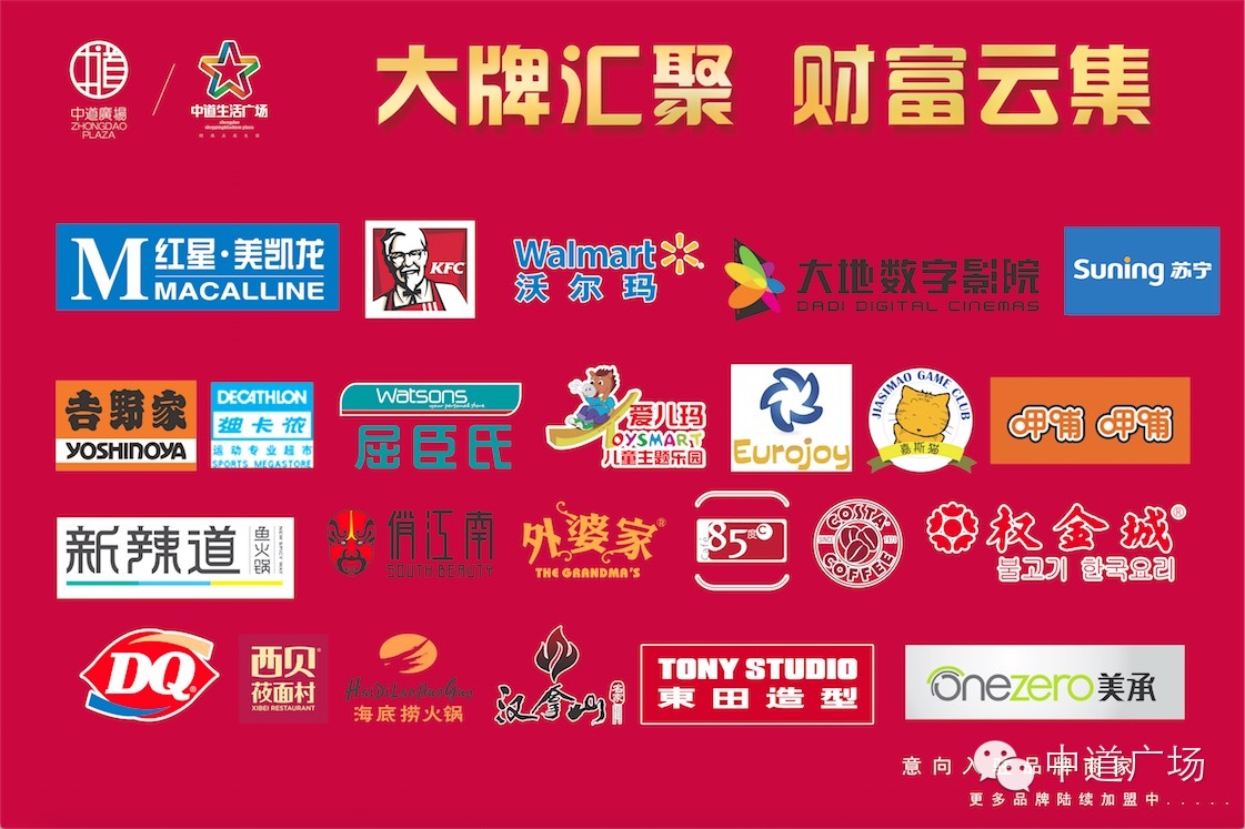 中道生活广场品牌招商进行中中道广场大牌汇聚,财富云集,意向合作品牌展示红星美凯龙呷哺呷哺沃尔玛俏江南苏宁.....