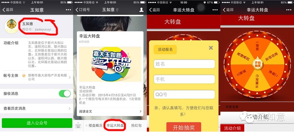 已经关注玉如意微信的朋友,直接可在菜单栏点击“幸运大转盘”即可参与。